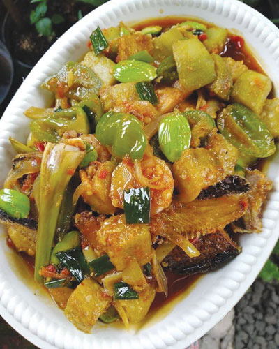 7. Masukan ikan asin, terong, pete