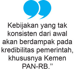 Argumentasi keserentakan itu muncul belakangan. Jika dari awal soal keserentakan pengangkatan CASN menjadi elemen pen-ting dalam penataan birokrasi, semestinya hal tersebut tecermin dalam penyusunan lini masa rekrutmen CASN.