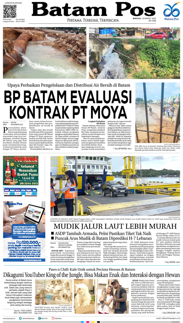 Silakan berlangganan untuk bisa membaca keseluruhan berita di Harian Batam Pos. ﹢ Berlangganan Baca Juga 3 Maret 2026 3 Maret 2026 WhatsAppTelegram 16 Maret 2025 16 Maret 2025 Buka konten iniDengan mendaftarkan diri Anda di Harian Batam Pos, Anda akan mendapatkan akses penuh ke seluruh konten.SubscribeKami tidak akan mengirimkan email yang tidak berkaitan dengan akun Anda.Saya setuju untuk memperoses data saya sesuai dengan Aturan Layanan yang disediakan.