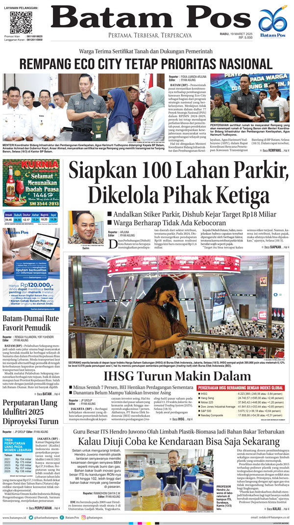 Silakan berlangganan untuk bisa membaca keseluruhan berita di Harian Batam Pos. ﹢ Berlangganan Baca Juga 3 Maret 2026 3 Maret 2026 WhatsAppTelegram 19 Maret 2025 19 Maret 2025 Buka konten iniDengan mendaftarkan diri Anda di Harian Batam Pos, Anda akan mendapatkan akses penuh ke seluruh konten.SubscribeKami tidak akan mengirimkan email yang tidak berkaitan dengan akun Anda.Saya setuju untuk memperoses data saya sesuai dengan Aturan Layanan yang disediakan.