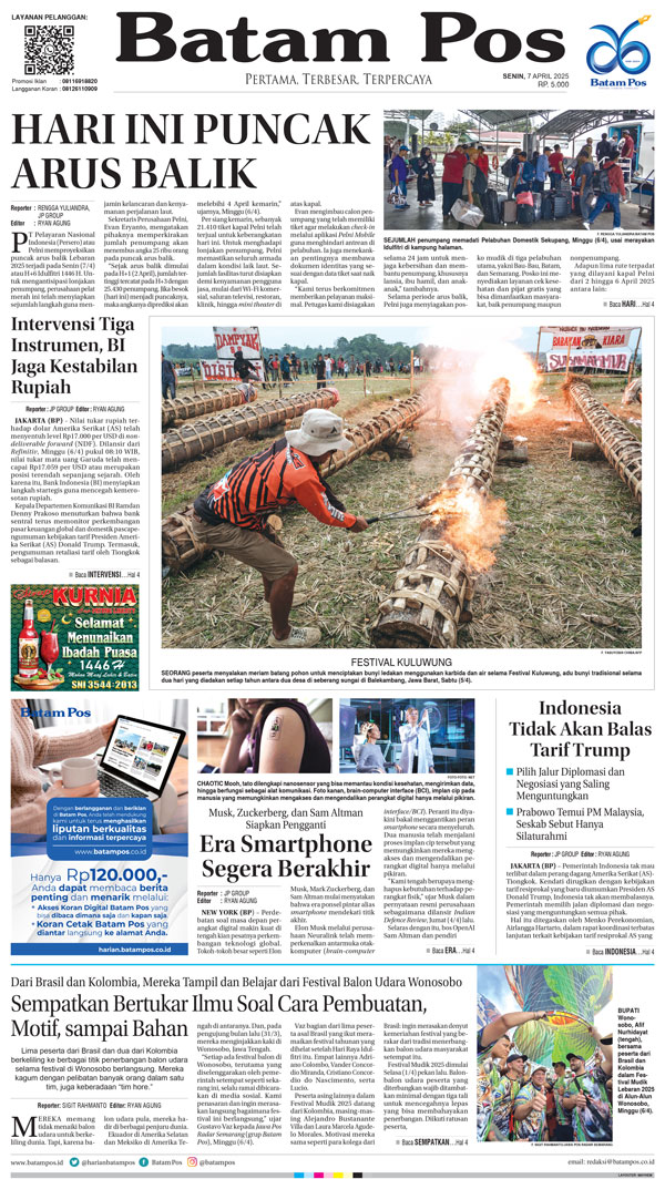 Silakan berlangganan untuk bisa membaca keseluruhan berita di Harian Batam Pos. ﹢ Berlangganan Baca Juga 3 Maret 2026 3 Maret 2026 WhatsAppTelegram 7 April 2025 7 April 2025 Buka konten iniDengan mendaftarkan diri Anda di Harian Batam Pos, Anda akan mendapatkan akses penuh ke seluruh konten.SubscribeKami tidak akan mengirimkan email yang tidak berkaitan dengan akun Anda.Saya setuju untuk memperoses data saya sesuai dengan Aturan Layanan yang disediakan.