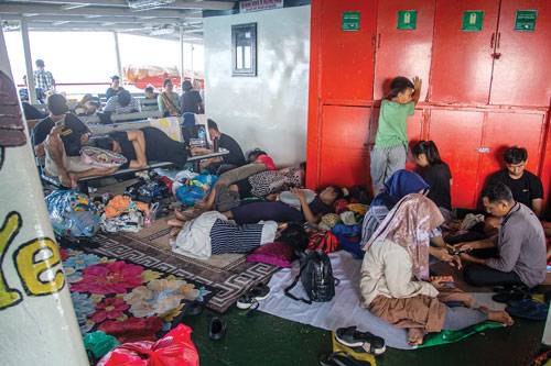 Menurut Astri, sebagian besar bangku di kapal sudah dikuasai oleh penumpang yang lebih dulu naik. Ironisnya, bangku tersebut bukan digunakan sebagai tempat duduk, melainkan dijadikan tempat tidur.