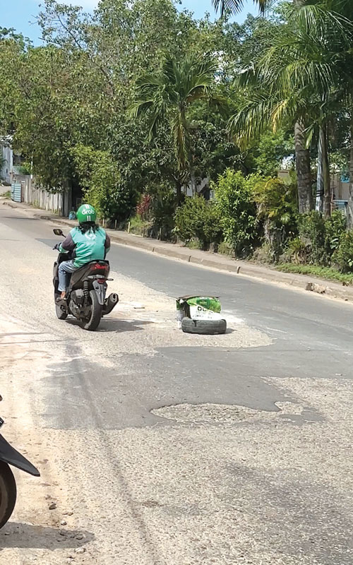 “Jalan ini sudah parah sekali sekarang, banyak lubangnya. Kalau ditambal pun percuma,” katanya. Ia menambahkan, selain berlubang, jalan juga bergelombang, sehingga sangat membahayakan pengendara, terutama saat hujan atau malam hari. “Bukan hanya lubang, jalannya juga bergelombang. Harus hati-hati,” ujarnya.