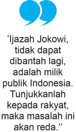 Jokowi notabene adalah milik dan modal sosial Indonesia. Jokowi sebetulnya sudah kehilangan hak privasinya karena tugas pelayanan kepada rakyat sudah tidak terbatas waktu. Karena itu, ijazah Jokowi tidak dapat dibantah lagi adalah milik publik Indonesia. Tunjukkanlah kepada rakyat, maka masalah ini akan reda. Nanti dapat ditelusuri siapa penyebab kericuhan itu. (*)