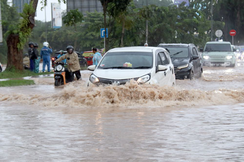 “Padahal hujannya baru satu jam, tapi sudah tergenang sampai semata kaki. Kami kesulitan menyeberang,” kata Naibaho, seorang warga.