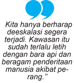 Kita hanya berharap deeskalasi segera terjadi. Kawasan itu sudah terlalu letih dengan bara api dan beragam penderitaan manusia akibat perang. Korban kemanusiaan dan hancurnya peradaban adalah harga yang terlalu mahal untuk tujuan seagung apa pun.