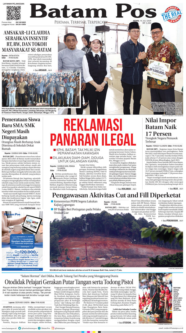 Silakan berlangganan untuk bisa membaca keseluruhan berita di Harian Batam Pos. ﹢ Berlangganan Baca Juga 4 April 2026 4 April 2026 WhatsAppTelegram 14 Juli 2025 14 Juli 2025 Buka konten iniDengan mendaftarkan diri Anda di Harian Batam Pos, Anda akan mendapatkan akses penuh ke seluruh konten.SubscribeKami tidak akan mengirimkan email yang tidak berkaitan dengan akun Anda.Saya setuju untuk memperoses data saya sesuai dengan Aturan Layanan yang disediakan.