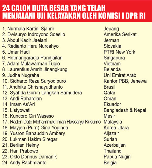 ”Fit and proper test untuk para calon dubes telah selesai di Komisi I, dan DPR sudah mengirim surat balasan kepada Presiden,” ujar Puan di Kompleks Parlemen, Senayan, Jakarta, Selasa (15/7).