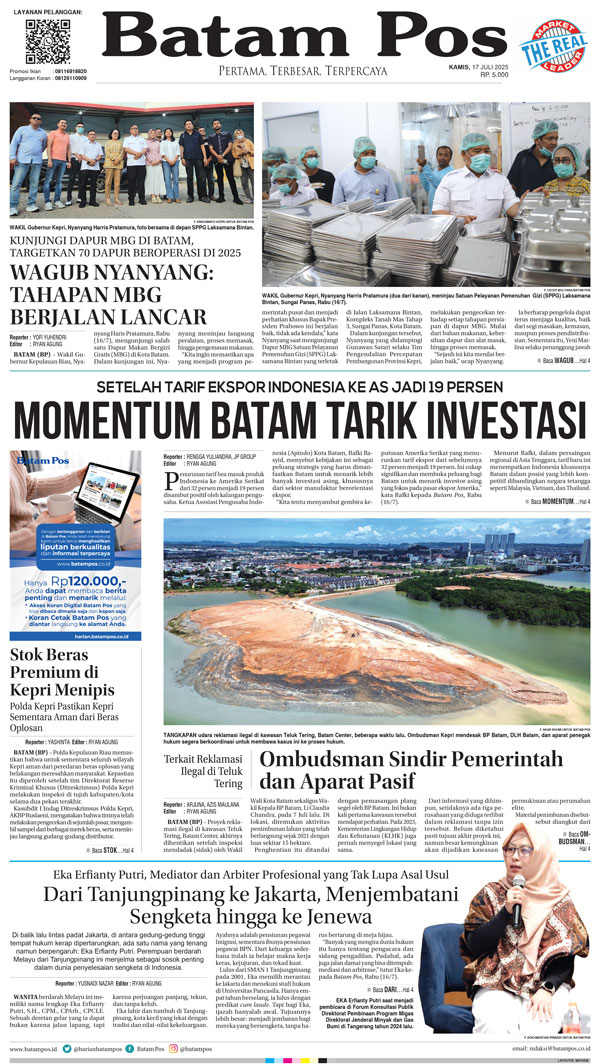 Silakan berlangganan untuk bisa membaca keseluruhan berita di Harian Batam Pos. ﹢ Berlangganan Baca Juga 4 April 2026 4 April 2026 WhatsAppTelegram 17 Juli 2025 17 Juli 2025 Buka konten iniDengan mendaftarkan diri Anda di Harian Batam Pos, Anda akan mendapatkan akses penuh ke seluruh konten.SubscribeKami tidak akan mengirimkan email yang tidak berkaitan dengan akun Anda.Saya setuju untuk memperoses data saya sesuai dengan Aturan Layanan yang disediakan.