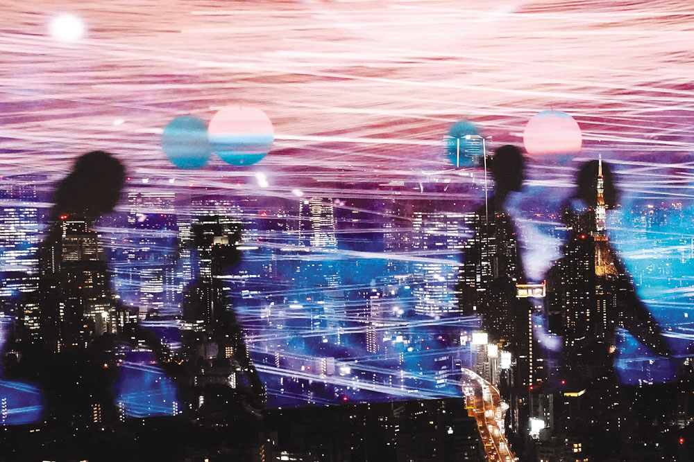 Citra nebula terlihat terpantul di jendela Sky Gallery, sebuah dek observasi di Shibuya Scramble Square, sebuah tempat wisata yang menawarkan panorama Tokyo, Rabu (16/7). Fasilitas observasi, Sky Galley, menyelenggarakan acara khusus berdurasi terbatas hingga 31 Agustus, terinspirasi oleh nebula yang dapat dinikmati di dalam ruangan di tengah musim panas. F. Kazuhiro NOGI/AFP