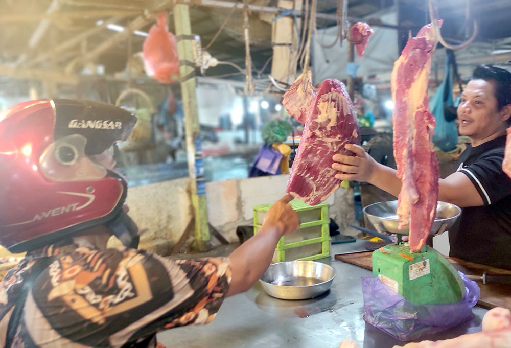 “Orang ramai ke pasar, tapi yang melirik daging makin sedikit, sepi,” katanya.