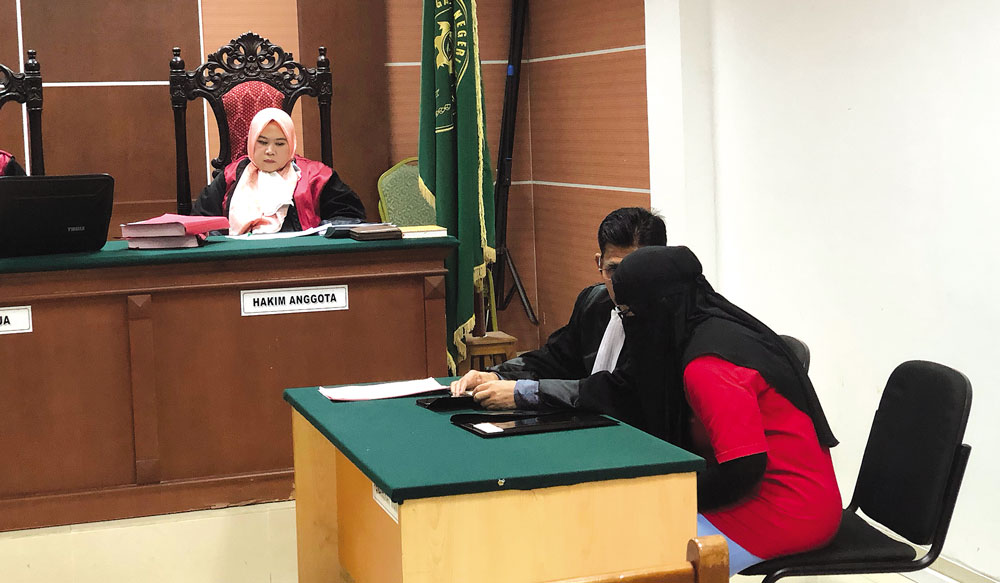Dalam persidangan, hakim ketua menanyakan apakah terdakwa telah menerima dakwaan dan didampingi penasihat hukum. “Saudara telah ditahan sejak 5 Mei sampai saat ini, apakah didampingi penasihat hukum?” tanya hakim Douglas. “Iya, saya sudah menerima surat dakwaan, Yang Mulia,” jawab Devi.