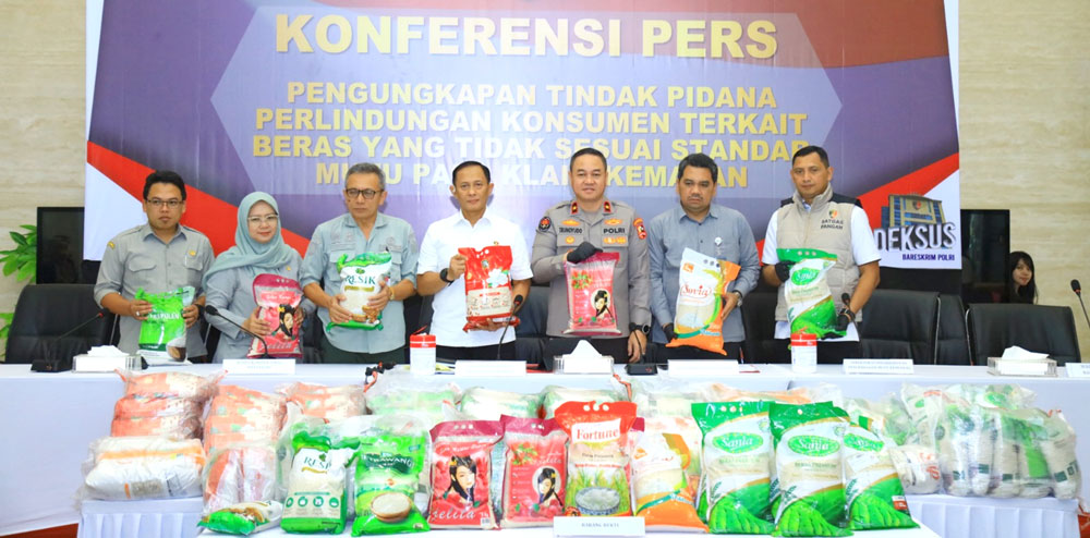 Menurutnya, penggeledahan juga dilakukan di empat titik lokasi di tiga kota, yaitu Jakarta Timur, Subang, dan Serang. Total 201 ton beras dalam berbagai kemasan disita bersama dokumen produksi, izin edar, serta hasil uji laboratorium.