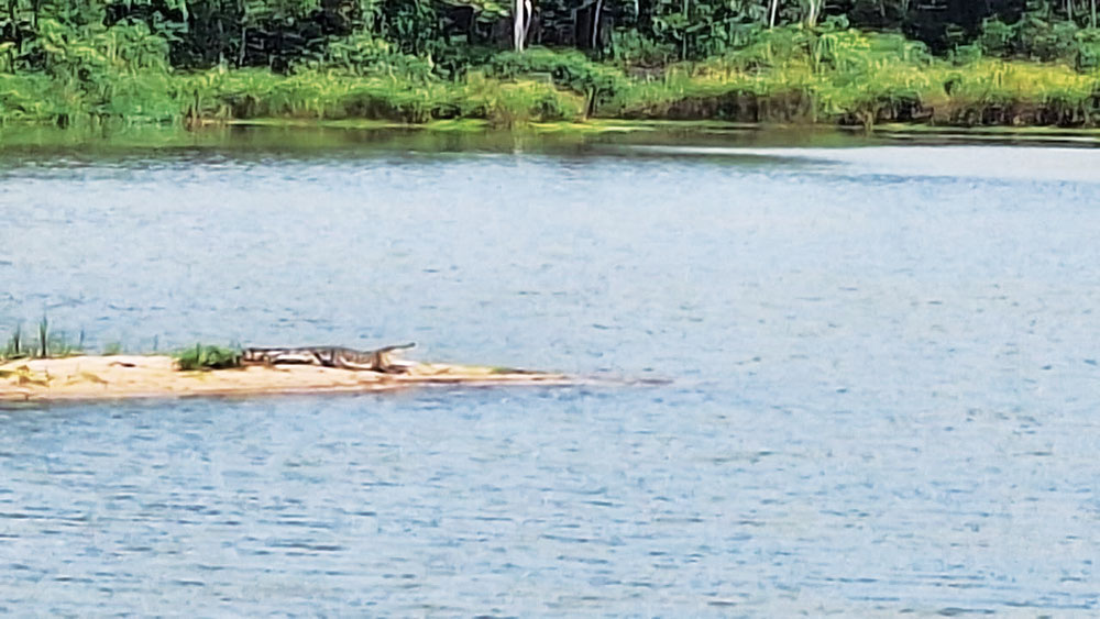 ”Buaya memang sering muncul di sini, bahkan minggu lalu sempat terlihat juga. Tapi kali ini lebih lama dari biasanya. Biasanya cuma melintas sebentar dan langsung menghilang,” ujarnya.