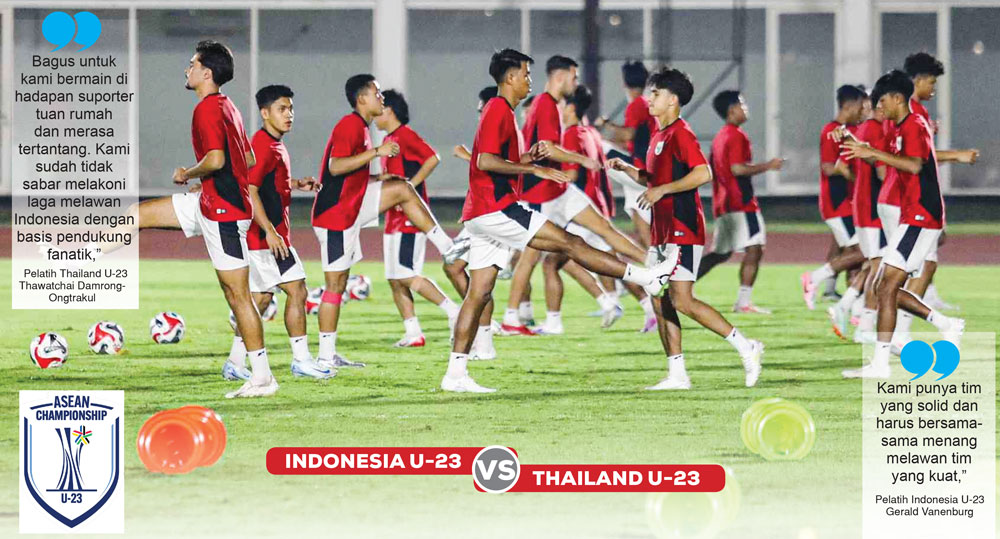 JAKARTA (BP) – Tantangan berat dihadapi pelatih tim Indonesia U-23, Gerald Vanenburg, saat melawan Thailand U-23 dalam ASEAN U-23 Championship 2025 malam nanti di Stadion Utama Gelora Bung Karno, Jakarta. Gerald harus putar otak agar bisa lolos ke final dengan kekuatan tim pincang.