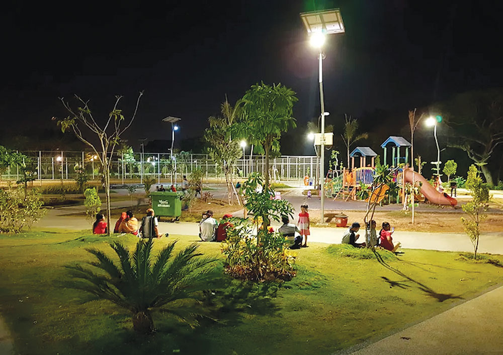 ANAK-anak banyak bermain di Taman Cahaya pada malam hari. f. ntravel