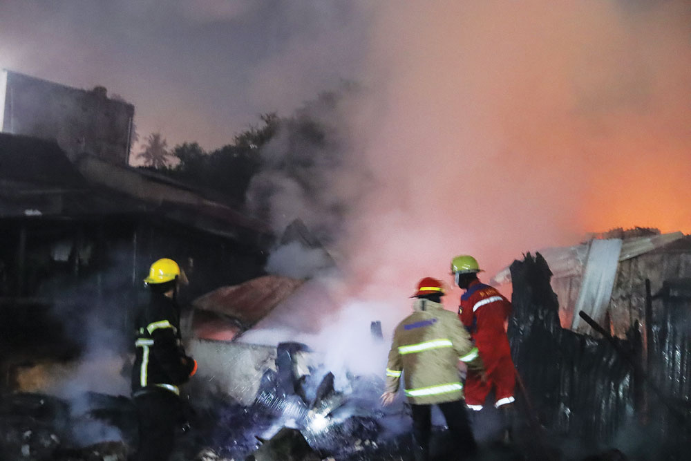 Musibah kebakaran rumah juga terjadi pada Kamis (24/7). Petugas pemadam kebakaran bersama warga berusaha memadamkan api yang membakar rumah liar di dekat SMPN 41 Batam seberang kantor Camat Lubukbaja. (***)