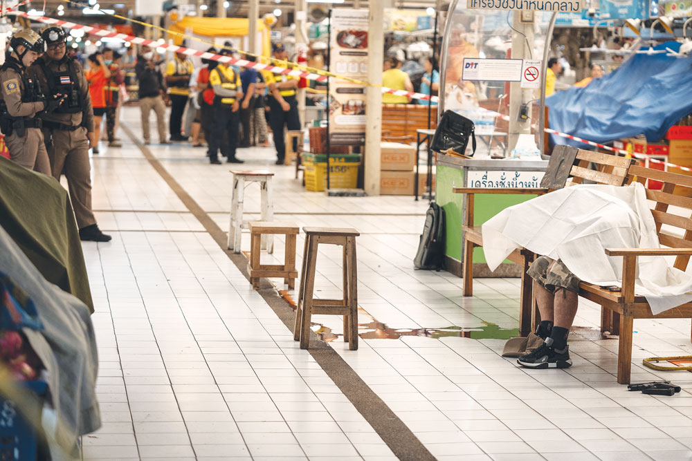 Insiden berdarah itu terjadi sekitar pukul 12.31 waktu setempat di kawasan Distrik Bang Sue, Bangkok. Menurut keterangan Kepolisian Kerajaan Thailand, pelaku menggunakan senjata sejenis pistol dan diketahui merupakan mantan pegawai pasar.