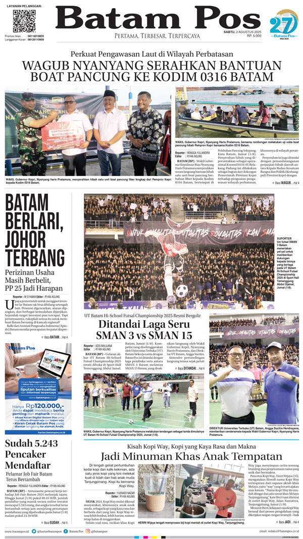 Silakan berlangganan untuk bisa membaca keseluruhan berita di Harian Batam Pos. ﹢ Berlangganan Baca Juga 14 Februari 2026 14 Februari 2026 WhatsAppTelegram 2 Agustus 2025 2 Agustus 2025 Buka konten iniDengan mendaftarkan diri Anda di Harian Batam Pos, Anda akan mendapatkan akses penuh ke seluruh konten.SubscribeKami tidak akan mengirimkan email yang tidak berkaitan dengan akun Anda.Saya setuju untuk memperoses data saya sesuai dengan Aturan Layanan yang disediakan.
