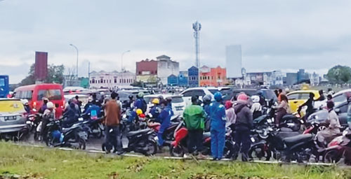 “Semua tumpah di simpang itu. Pekerja, orang tua, semua bersamaan. Jadinya macet total,” kata Sumardi, warga Tanjunguncang.