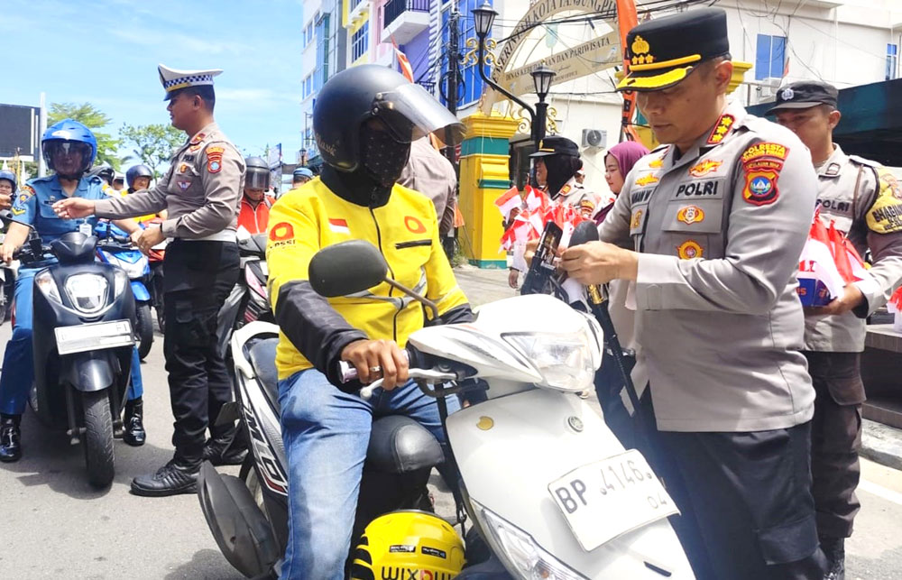 Ratusan Pengendara Dapat Atribut Merah Putih