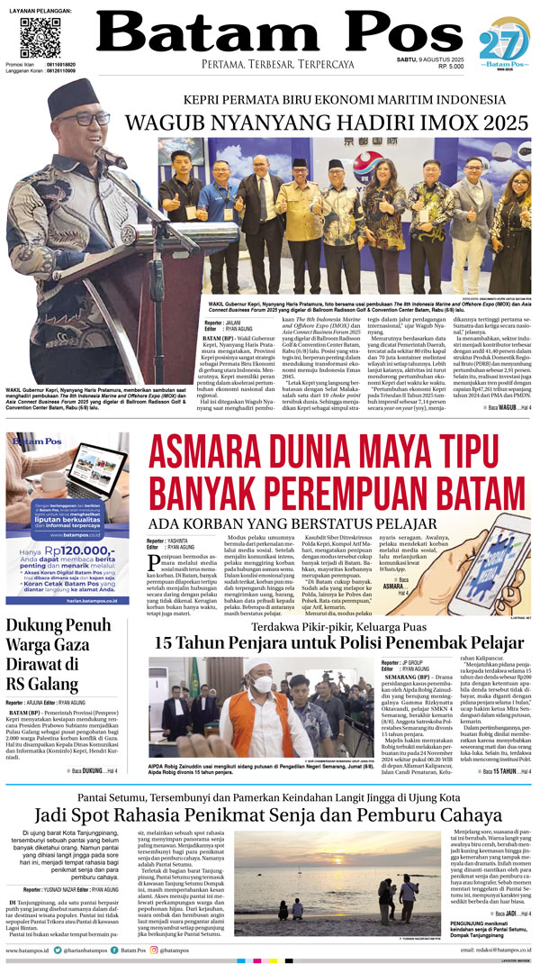 Silakan berlangganan untuk bisa membaca keseluruhan berita di Harian Batam Pos. ﹢ Berlangganan Baca Juga 14 Februari 2026 14 Februari 2026 WhatsAppTelegram 9 Agustus 2025 9 Agustus 2025 Buka konten iniDengan mendaftarkan diri Anda di Harian Batam Pos, Anda akan mendapatkan akses penuh ke seluruh konten.SubscribeKami tidak akan mengirimkan email yang tidak berkaitan dengan akun Anda.Saya setuju untuk memperoses data saya sesuai dengan Aturan Layanan yang disediakan.