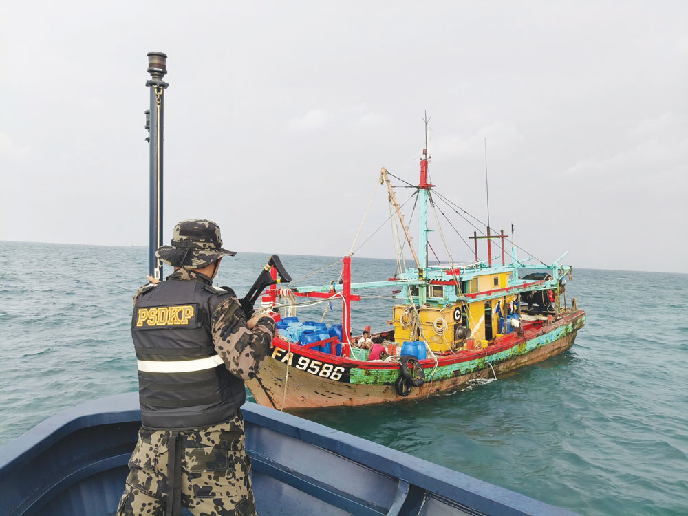 Di wilayah perairan, Kementerian Kelautan dan Perikanan (KKP) kembali menegaskan komitmennya menjaga kedaulatan laut Indonesia. Sebuah kapal ikan asing berbendera Malaysia ditangkap di Selat Malaka, Selasa (29/7), karena kedapatan menangkap ikan secara ilegal di wilayah perairan Indonesia. Kapal tersebut menggunakan alat tangkap trawl dan diawaki lima warga negara Myanmar. Kini, seluruh awak, kapal, dan hasil tangkapan sudah ditangani PPNS di Pangkalan PSDKP Batam.