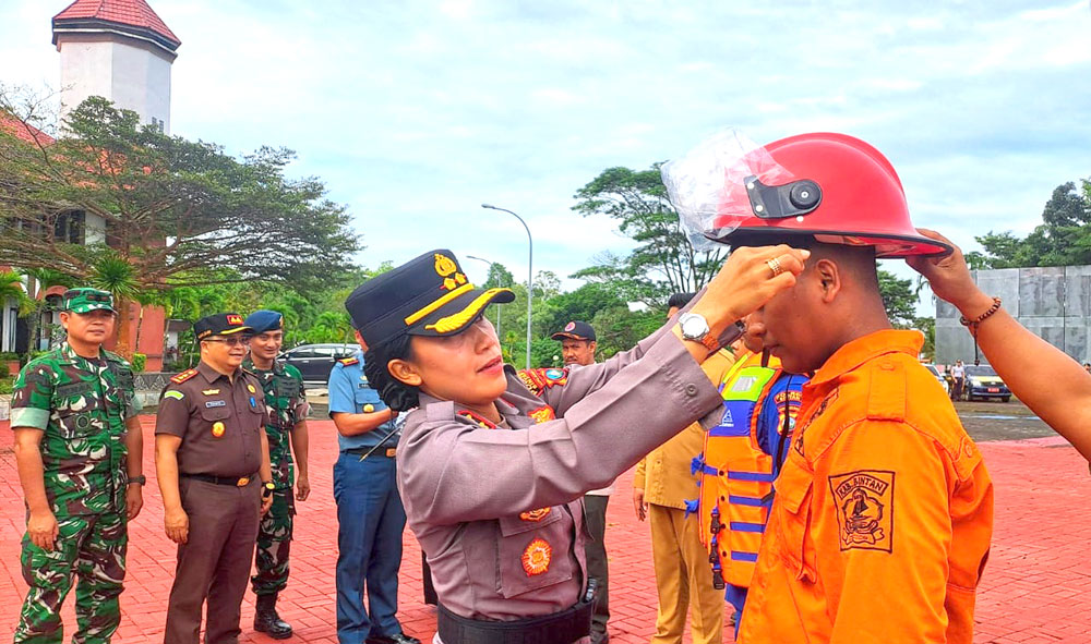 BINTAN (BP) – Bupati Bintan, Roby Kurniawan, memimpin apel kesiapsiagaan bencana di halaman Kantor Bupati Bintan, Bintan Buyu, Selasa (12/8) pagi. Kegiatan ini digelar untuk meningkatkan kesadaran dan memperkuat kesiapan seluruh pihak dalam menghadapi potensi bencana yang kerap mengancam wilayah, seperti banjir, cuaca ekstrem, gelombang tinggi, hingga kebakaran hutan dan lahan (karhutla).