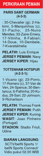 Entraineur PSG Luis Enrique memercayakan gawangnya kepada rekrutan baru Lucas Chevalier dan Renato Marin, serta Matvei Safonov. Chevalier diproyeksikan menjalani debut dini hari nanti.