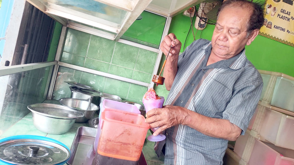 ”Kami bersyukur bisa jualan es Apollo sampai sekarang. Alhamdulillah saya bisa menyekolahkan anak hingga meraih gelar sarjana,” ujar bapak dua anak ini.