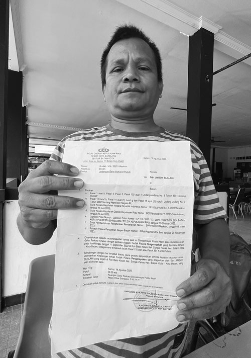 Ia juga melaporkan penyidik Polsek Batam Kota ke Divisi Propam Polri atas dugaan pelanggaran etik dan penyalahgunaan wewenang.