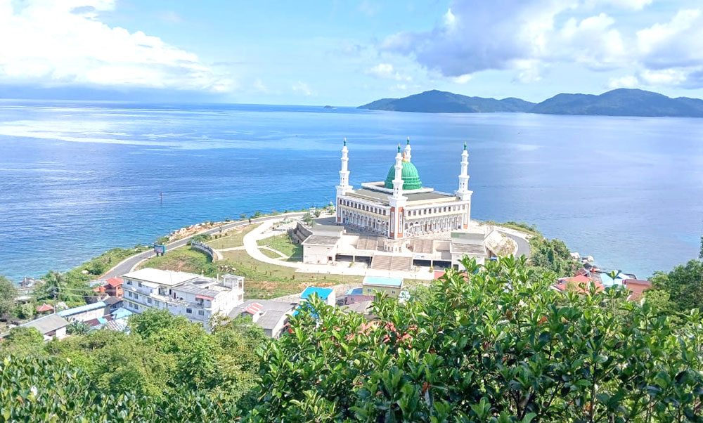 Anambas (BP) – Dari kejauhan, sebelum kapal menyentuh dermaga Pelabuhan Tarempa, sebuah bangunan megah dengan kubah hijau menyala dan menara putih menjulang sudah menyapa setiap mata yang memandang. Itulah Masjid Agung Baitul Ma’mur, ikon baru Kabupaten Kepulauan Anambas yang berdiri anggun di bibir Selat Tarempa.
