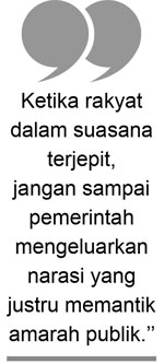 Pertama, pemerintah harus memperbaiki pola komunikasi yang jelas dan terarah. Persoalan komunikasi dengan masyarakat ini sangat penting. Apalagi ketika rakyat dalam suasana terjepit. Jangan sampai pemerintah mengeluarkan narasi yang justru memantik amarah publik.