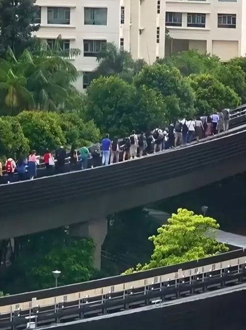 Viral di media sosial, sejumlah penumpang terpaksa berjalan kaki di tepi rel setelah kereta mendadak berhenti. Rekaman dan foto para penumpang yang menyusuri jalur rel itu segera beredar di media sosial, memicu diskusi soal keamanan dan keandalan transportasi publik di Singapura.
