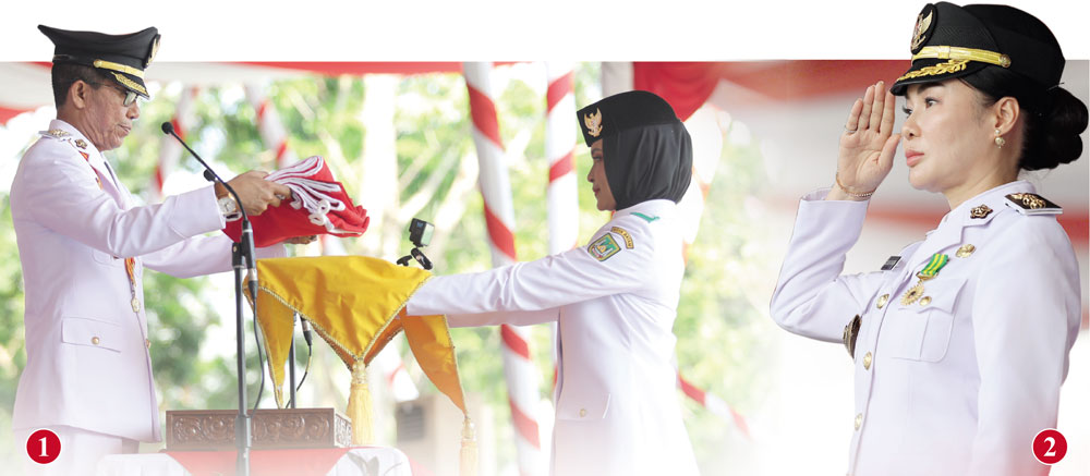 2. Wakil Wali Kota Batam, Li Claudia Chandra, memberikan penghormatan saat pengibaran bendera.