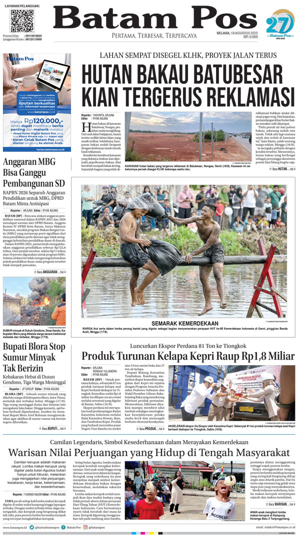 Silakan berlangganan untuk bisa membaca keseluruhan berita di Harian Batam Pos. ﹢ Berlangganan Baca Juga WhatsAppTelegram 19 Agustus 2025 19 Agustus 2025 Buka konten iniDengan mendaftarkan diri Anda di Harian Batam Pos, Anda akan mendapatkan akses penuh ke seluruh konten.SubscribeKami tidak akan mengirimkan email yang tidak berkaitan dengan akun Anda.Saya setuju untuk memperoses data saya sesuai dengan Aturan Layanan yang disediakan.