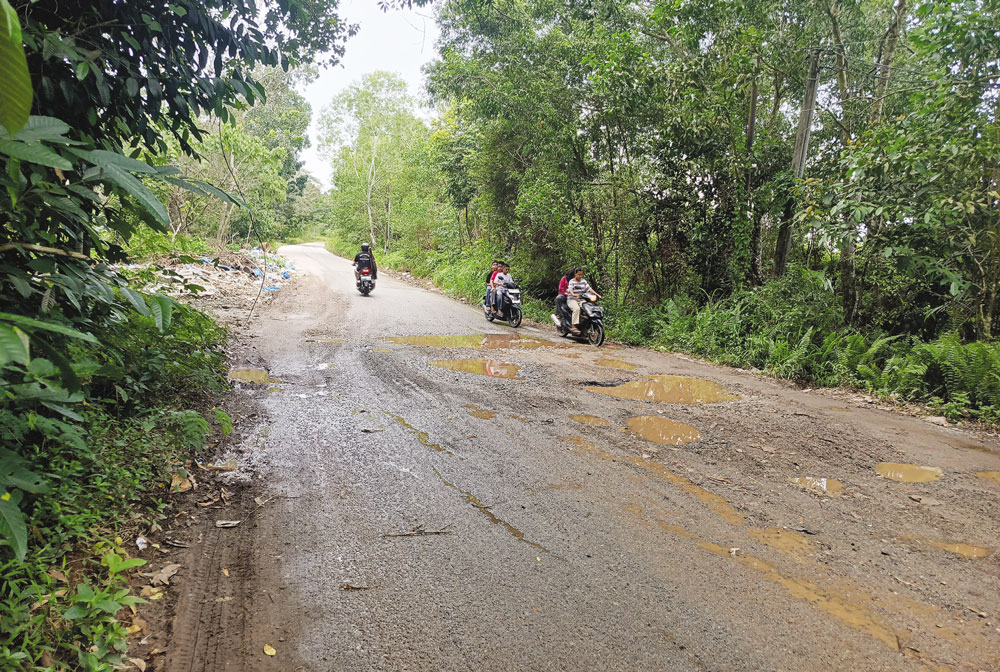 “Sudah jalannya rusak, sekarang sampah juga menumpuk di pinggir jalan. Kalau malam makin bahaya karena gelap, lampu jalan banyak mati,” keluh Sumarno, warga Tanjungriau.