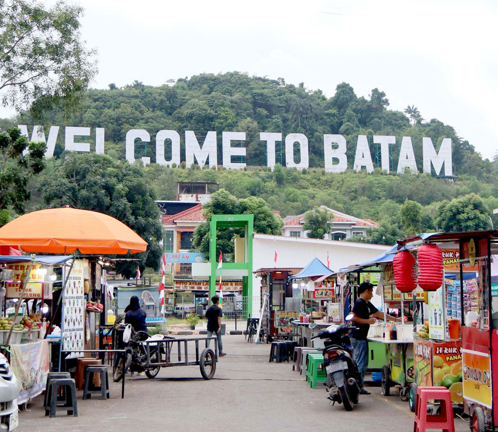 GELIAT pedagang UMKM terlihat di kawasan ikon Welcome To Batam, Rabu (20/8). Mereka menjajakan aneka makanan, minuman, hingga beragam produk lainnya kepada pengunjung. Aktivitas ekonomi ini menambah warna kawasan tersebut. Namun, pesona ikon Welcome To Batam kian pudar seiring masifnya pembangunan yang mulai menutupi kawasan itu. Bahkan, ikon Welcome to Batam akan hilang karena kawasan itu sudah dialokasikan ke pengembang properti. F Cecep Mulyana/Batam Pos