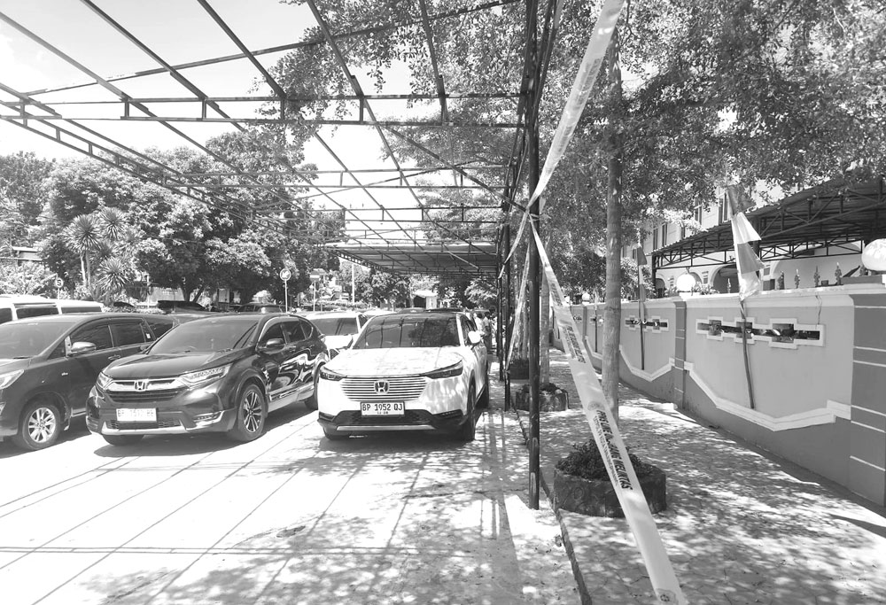 TANJUNGPINANG (BP) – Satpol PP Kota Tanjungpinang menyegel sebuah atap pelindung atau awning di dekat Gedung Sekolah Pelita Nusantara. Pembangunan dihentikan lantaran tidak mengantongi izin resmi.