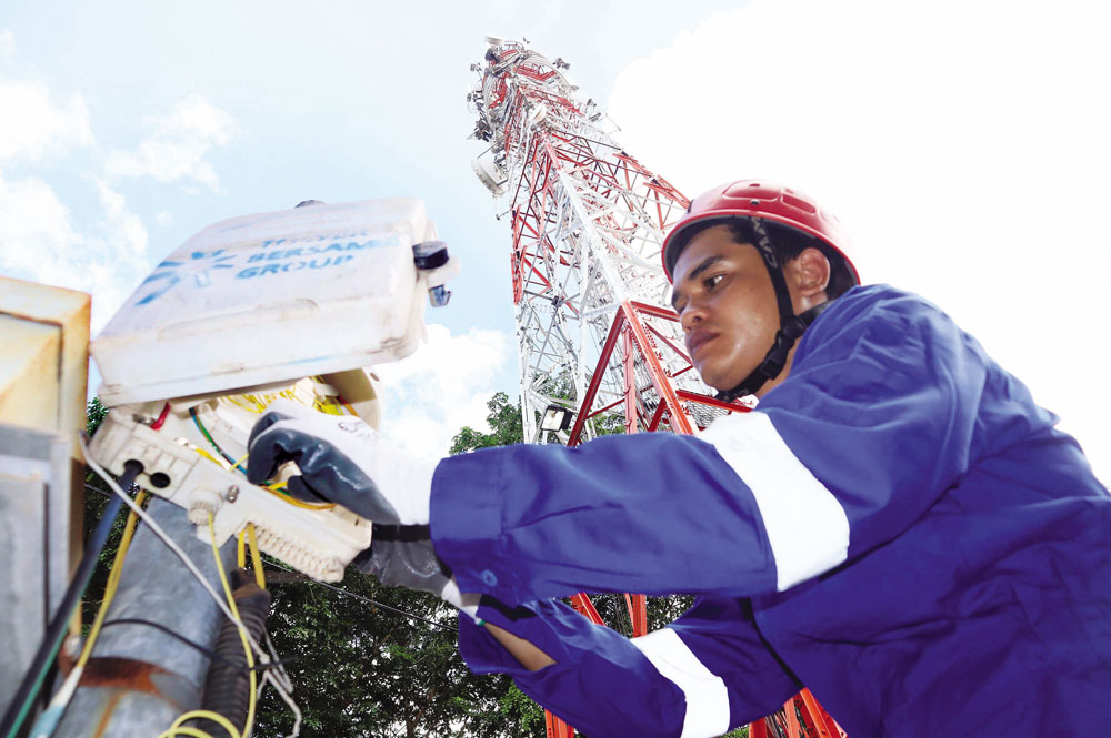 Jefri, tim maintenance mengecek Tower Bersama Infrastructure Group (TBIG) yang berada di kawasan Taiwan Industrial Park di Kelurahan Kabil, Kecamatan Nongsa, Kota Batam, Senin (25/8/2025). Keberadaan tower bersama melalui infrastruktur telekomunikasi di Batam sangat mendukung pertumbuhan ekonomi di berbagai sektor, baik sektor industri dan parawisata, termasuk Usaha Mikro, Kecil, dan Menengah (UMKM) serta sektor lainnya. Insfrastruktur tersebut juga punya peran krusial dalam menopang kemudahan akses digital dalam menunjang kehidupan masyarakat di masa kini. F. Cecep Mulyana/Batam Pos