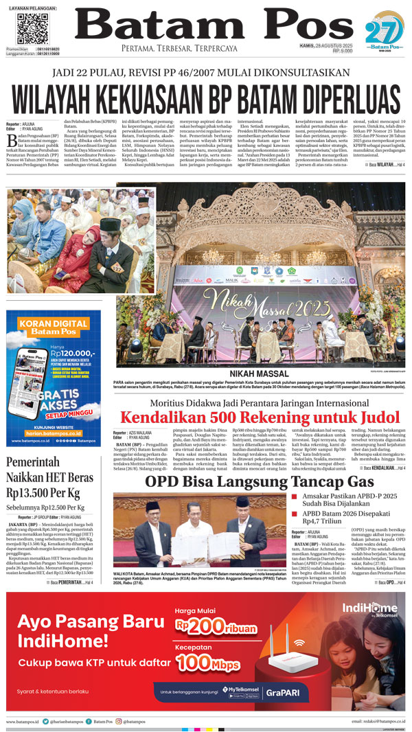 Silakan berlangganan untuk bisa membaca keseluruhan berita di Harian Batam Pos. ﹢ Berlangganan Baca Juga WhatsAppTelegram 28 Agustus 2025 28 Agustus 2025 Buka konten iniDengan mendaftarkan diri Anda di Harian Batam Pos, Anda akan mendapatkan akses penuh ke seluruh konten.SubscribeKami tidak akan mengirimkan email yang tidak berkaitan dengan akun Anda.Saya setuju untuk memperoses data saya sesuai dengan Aturan Layanan yang disediakan.