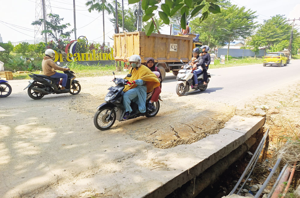 “Ini jalur ramai, banyak truk tanah lalu lalang. Kami takut tiba-tiba patah saat kendaraan melintas, lalu terjebak di dalam lubang,” kata Supriyadi, warga setempat, Selasa (26/8).