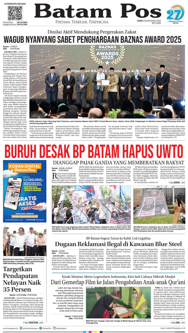 Silakan berlangganan untuk bisa membaca keseluruhan berita di Harian Batam Pos. ﹢ Berlangganan Baca Juga WhatsAppTelegram 29 Agustus 2025 29 Agustus 2025 Buka konten iniDengan mendaftarkan diri Anda di Harian Batam Pos, Anda akan mendapatkan akses penuh ke seluruh konten.SubscribeKami tidak akan mengirimkan email yang tidak berkaitan dengan akun Anda.Saya setuju untuk memperoses data saya sesuai dengan Aturan Layanan yang disediakan.