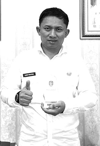 Cahyo Prayitno ST MM menunjukkan penghargaan peringkat kedua. F. HUMAS PEMKAB KARIMUN UNTUK BATAM POS