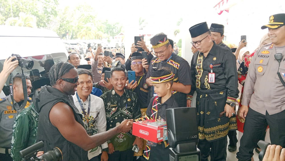 KEDUA “kawan lama” itu saling bersalaman dan berpelukan, sebelum kemudian Melly Mike, rapper asal Amerika Serikat, menghadiahi sang teman Rayyan Arkan Dikha — bocah asal Kuantan Singingi (Kuansing), Riau — sebuah Nintendo.