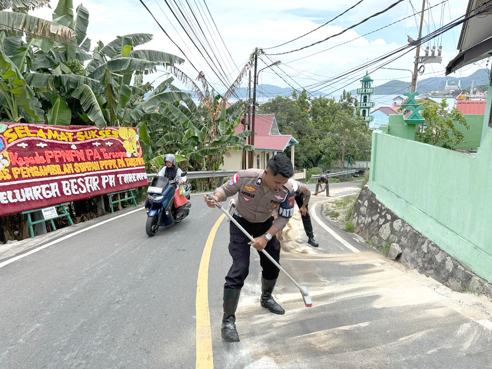 Kasat Lantas Polres Anambas, Iptu Zulfikar Andri, membenarkan kejadian tersebut. Ia menyebut pihaknya langsung turun membersihkan jalan dengan menyiram air sabun agar tidak licin.