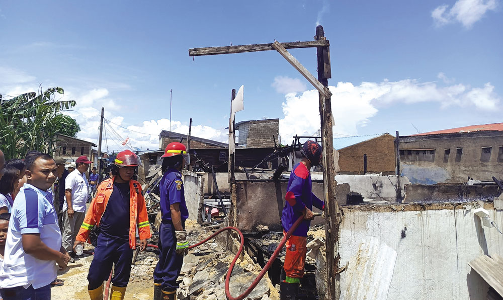 SAGULUNG (BP) – Warga Kaveling Bukit Melati I, RT 04/RW 06, Kelurahan Sei Pelunggut, Kecamatan Sagulung, dikejutkan kobaran api yang meludeskan tiga unit rumah mes karyawan PT Naga Tata Mestika, Rabu (3/9) sekitar pukul 11.30 WIB. Perusahaan tersebut diketahui sebagai subkontraktor di galangan kapal PT Marcopolo.