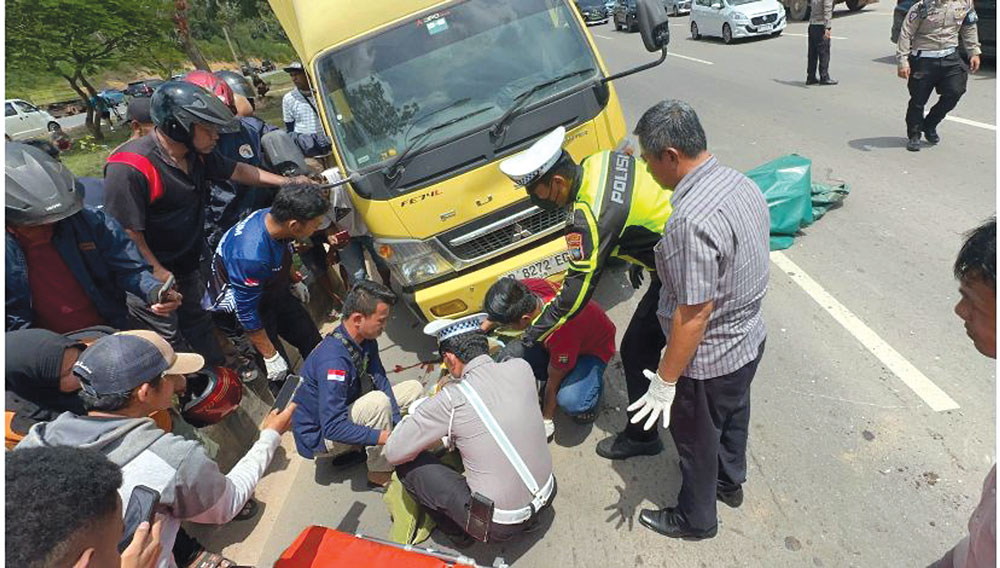 Selain masalah kesehatan, kecelakaan lalu lintas kembali me­renggut korban jiwa. Seorang perempuan pengendara motor tewas seketika setelah kendaraannya masuk ke kolong truk di Jalan Sudirman, Batam Kota, Minggu (31/8). Korban berinisial PM, 50 tahun, menyeberang mendadak dari kiri ke kanan sehingga tertabrak truk Mitsubishi Canter yang dikemudikan JPN, 26 tahun. Polisi masih melakukan penyelidikan terkait kecelakaan ini.