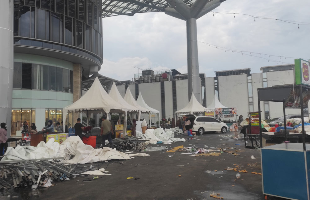 Beberapa tenda stand bazar UMKM di kawasan Pollux Mall Batam roboh akibat diterpa angin kencang, Minggu (31/8) sore. F. Cecep Mulyana/Batam Pos