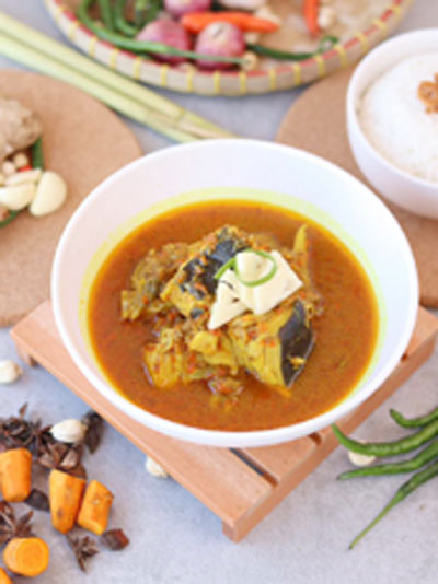 Hidangan utama yang ditawarkan adalah lempah kuning, masakan berkuah kuning yang segar dengan perpaduan bumbu rempah khas Bangka Belitung. Menu andalan ini hadir dengan pilihan ikan maupun daging, menghadirkan cita rasa yang autentik sebagaimana di kampung halamannya.
